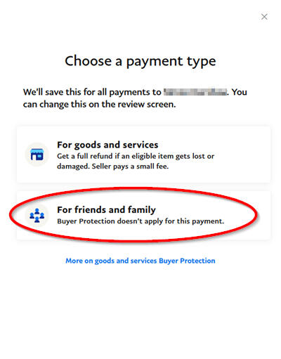 If you’re sending to us in PayPal for the first time and don’t see a pop-up to choose how to send, or there’s no arrow to select “Friends & Family” on the payment review screen (shown below), your country likely doesn’t allow it—Please use Spotfund or WISE instead.If a payment is sent as Goods & Services, we may refund it with a note asking you to resend via Spotfund or WISE.